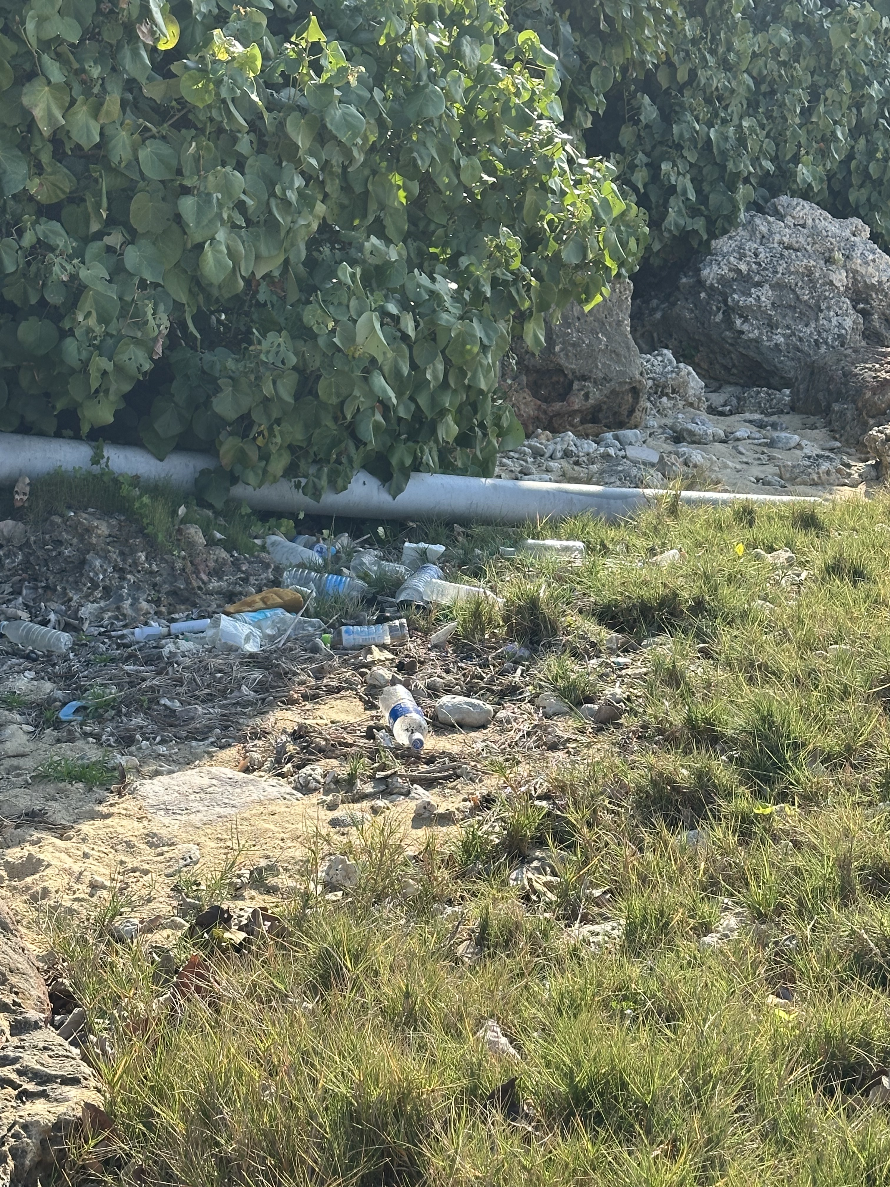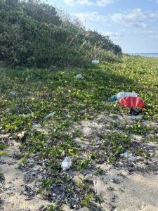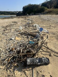 奥のエリアに漂着ゴミがあるので